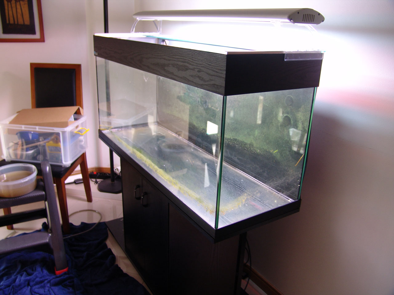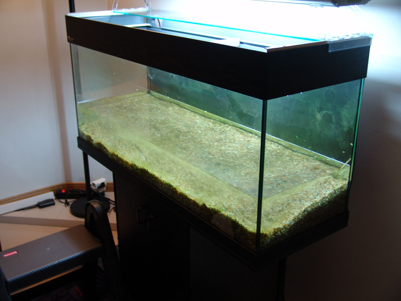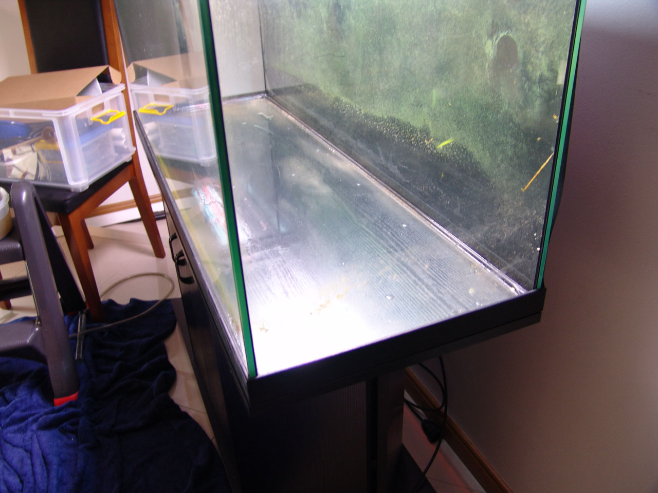 Aquarium is empty and was washed and scrubbed to remove all algae.