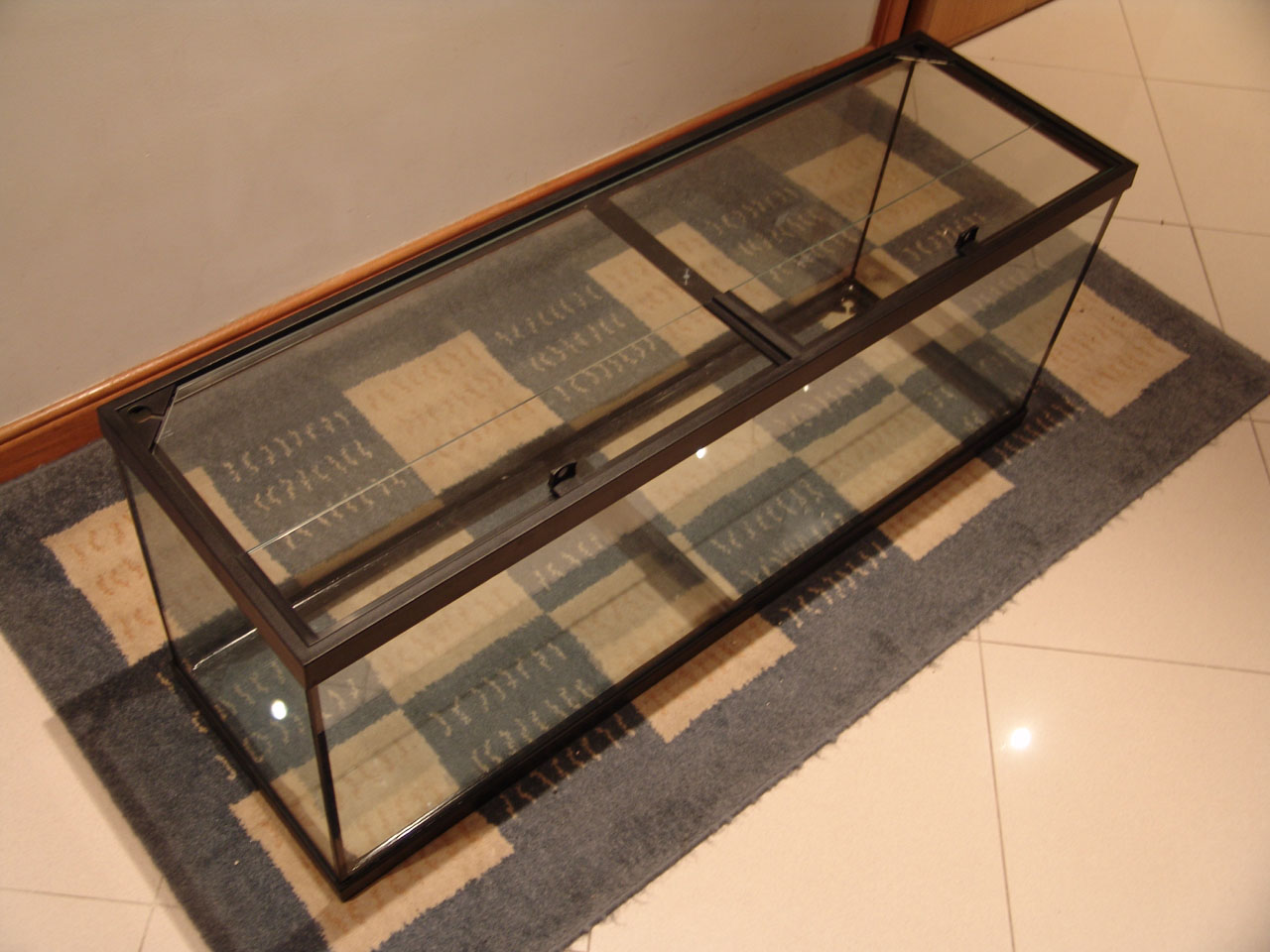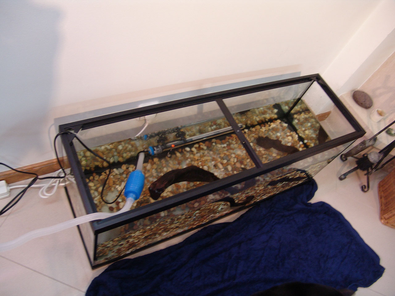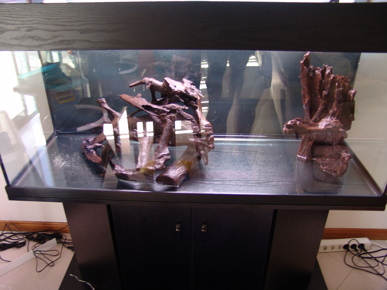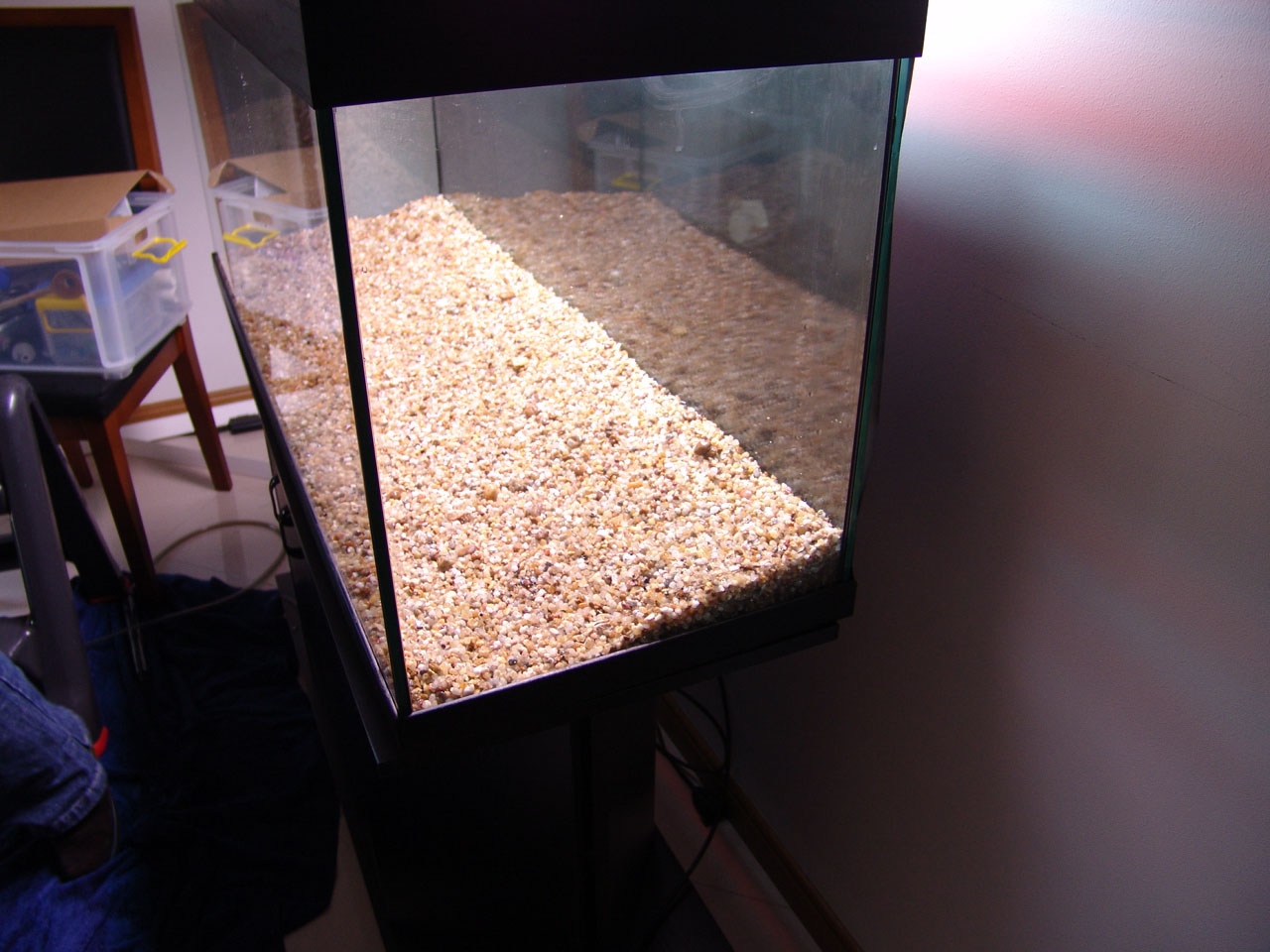 Aquarium is empty and was washed and scrubbed to remove all algae.