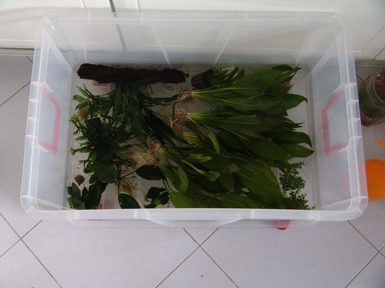 The "on the side" aquarium was filled with water and logs from the main