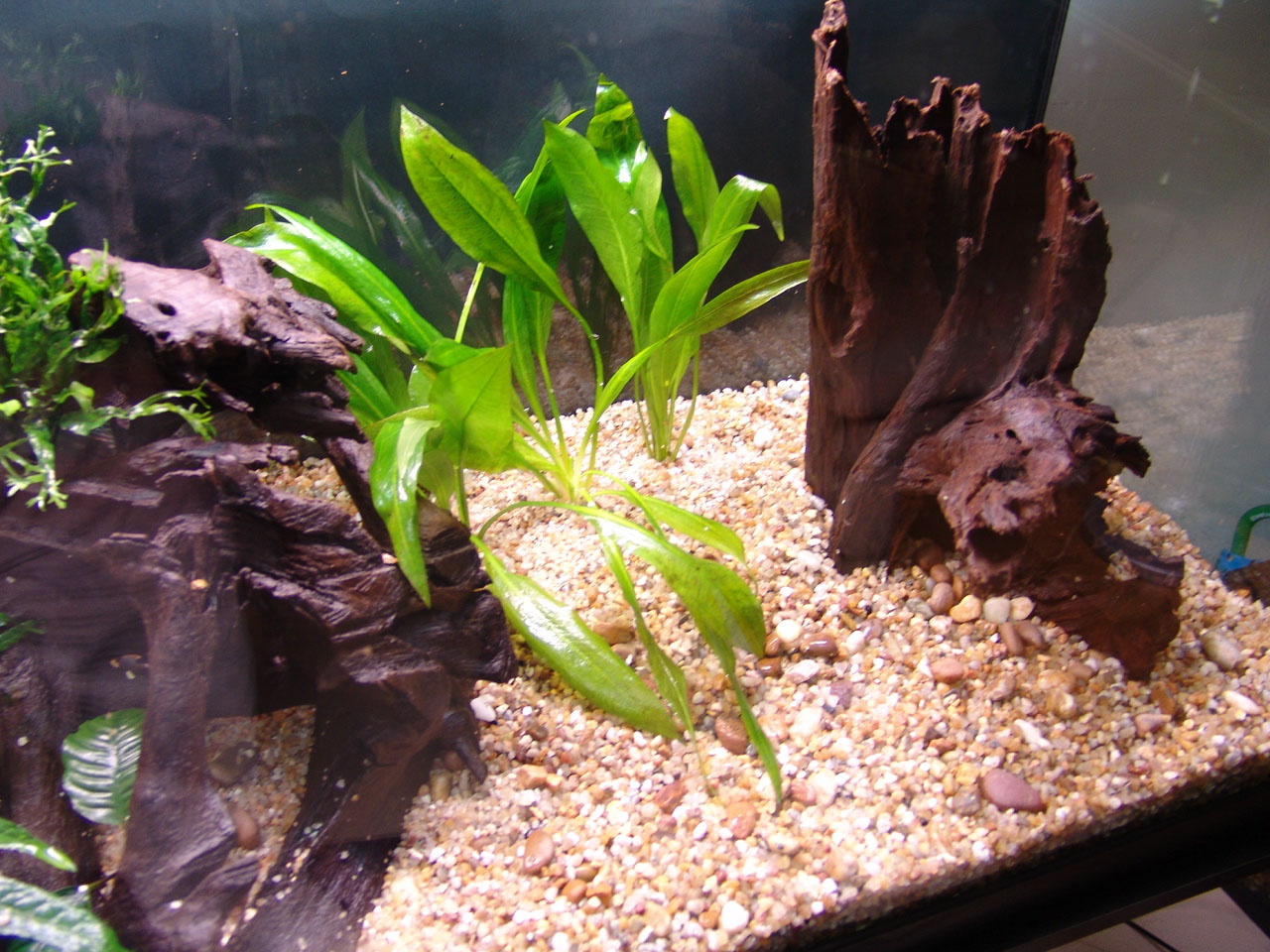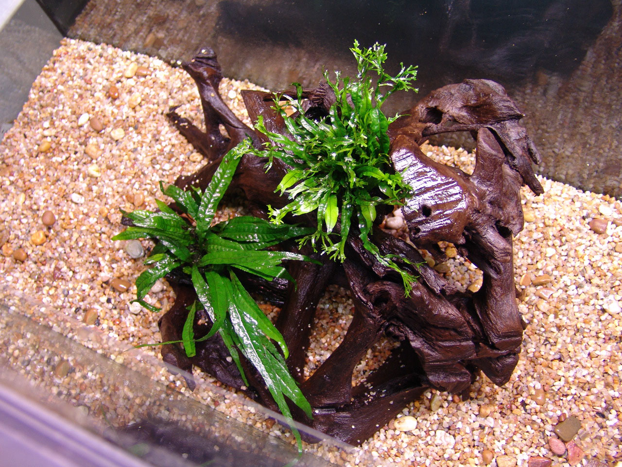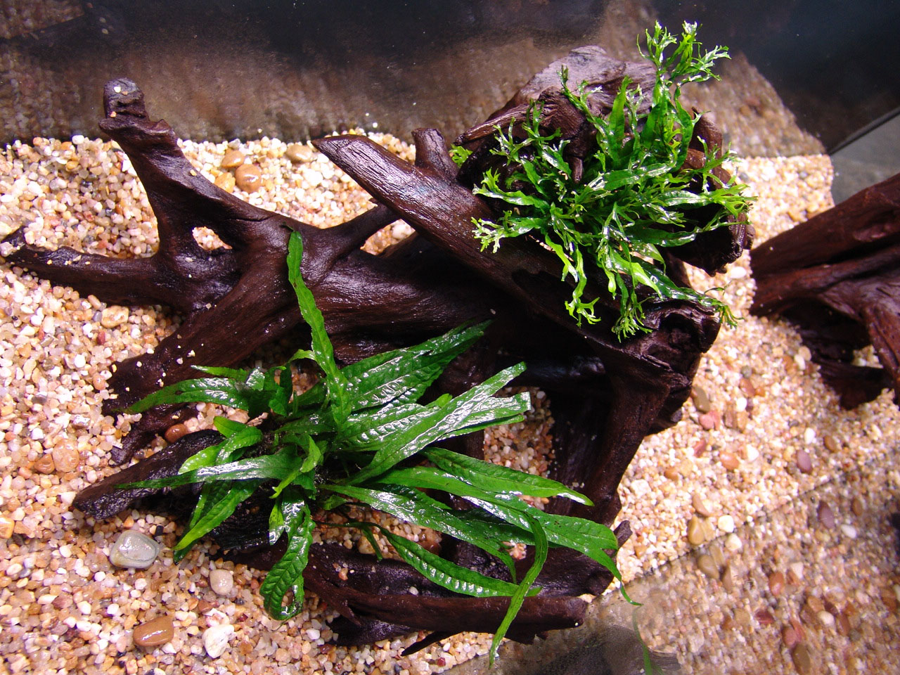 Plants were distributed over the gravel and on the driftwood