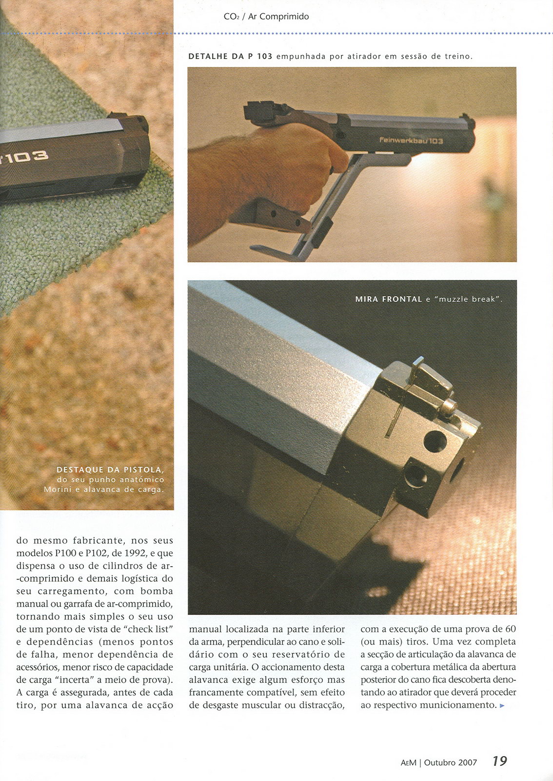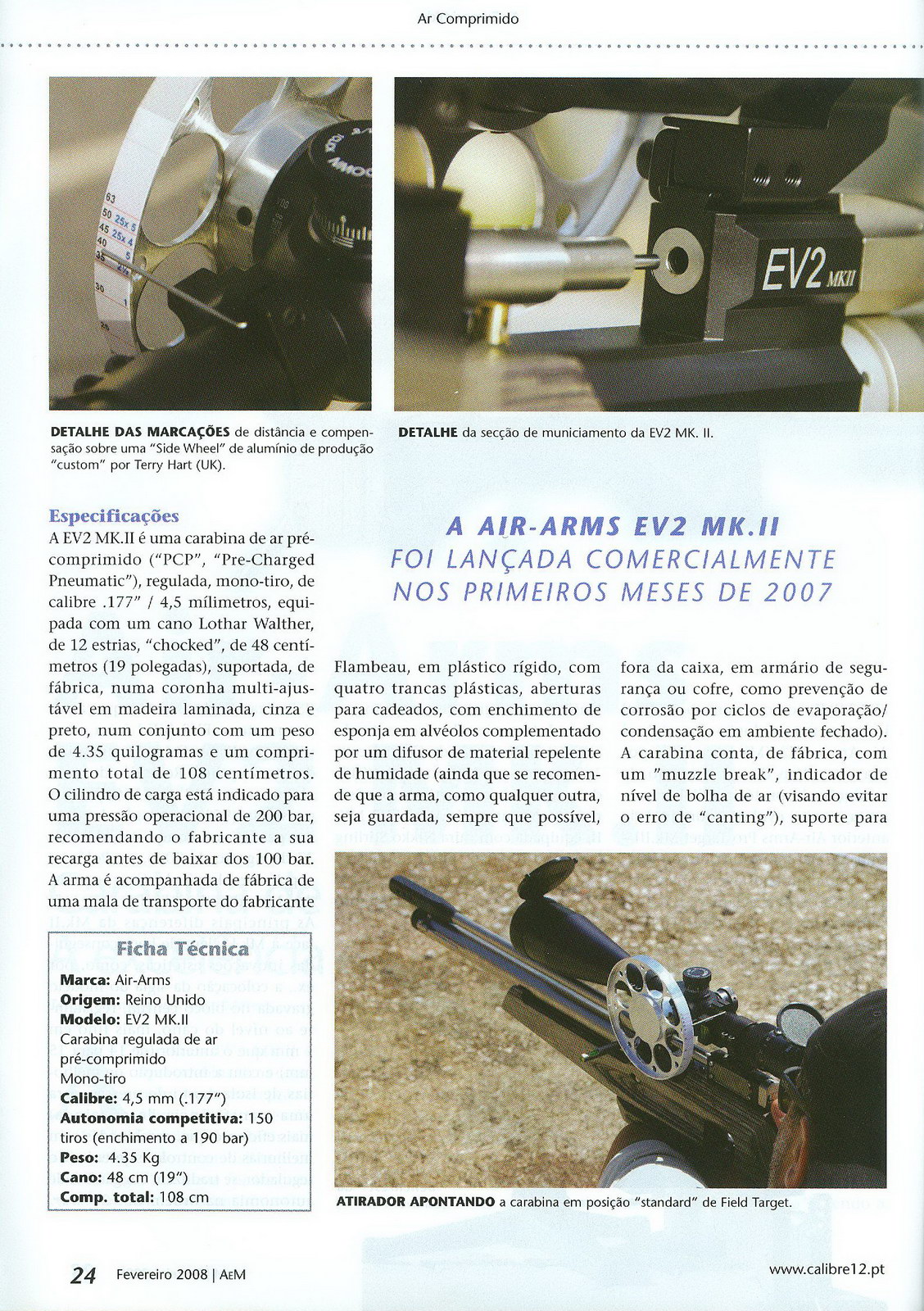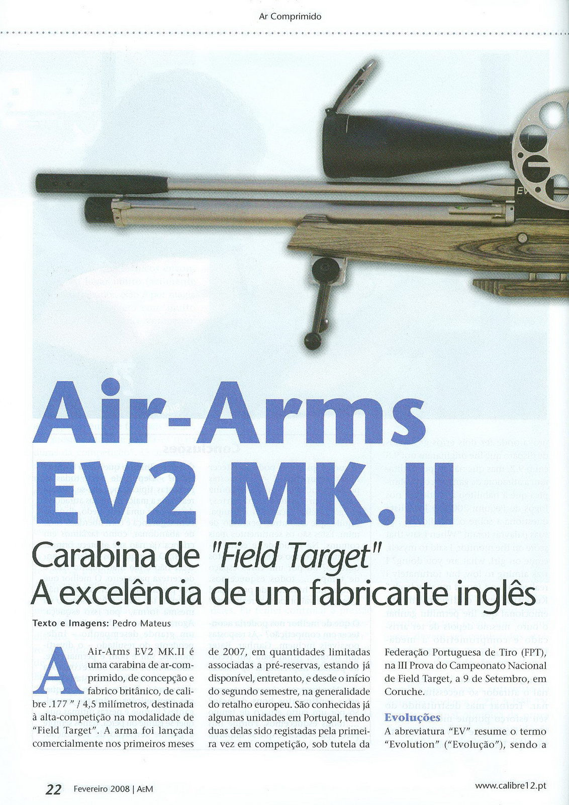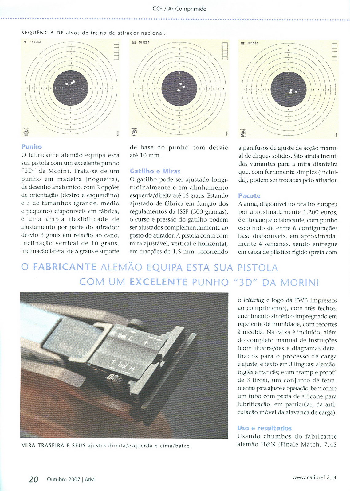Artigo publicado sobre "Air-Arms EV2 MK.II" na Revista Armas & Munições de Janeiro/Fevereiro de 2008, pág.as 22 a 27. ![]() ![]() ![]() ![]() ![]() ![]() Em formato PDF, aprox. 3.7 MB >> Artigo publicado sobre "Campeonato do Mundo de Field Target 2007" na Revista Armas & Munições de Novembro/Dezembro de 2007, pág.as 10 e 11. ![]() ![]() Em formato PDF, aprox. 1.1 MB >> Artigo publicado sobre "Pistola AC Feinwerkbau (FWB) P 103" na Revista Armas & Munições de Setembro/Outubro de 2007, pág.as 18 a 21. ![]() ![]() ![]() ![]() Em formato PDF, aprox. 2.1 MB >> Artigo publicado sobre "Espingardas de Ar-Comprimido ao Ar-Livre; Modelos, o seu uso, a sua tecnologia e a sua história" na Revista Armas & Munições de Julho/Agosto de 2007, pág.as 62 a 65. ![]() ![]() ![]() ![]() Em formato PDF, aprox. 1.8 MB >> Artigo publicado sobre "Equipamentos e Acessórios de Field Target" na Revista Armas & Munições de Março/Abril de 2007, pág.as 58 a 62. ![]() ![]() ![]() ![]() ![]() Em formato PDF, aprox. 2.7 MB >> Artigo publicado sobre "Balística de Field Target" na Revista Armas & Munições de Janeiro/Fevereiro de 2007, pág.as 60, 61, 62 e 64. ![]() ![]() ![]() ![]() Em formato PDF, aprox. 1.2 MB >> Artigo publicado sobre "Alvos de Field Target" na Revista Armas & Munições de Novembro/Dezembro de 2006, pág.as 54 a 56. ![]() ![]() ![]() Em formato PDF, aprox. 940 KB >> Artigo publicado sobre o "Field Target e Associações Desportivas de FT", na Revista Armas & Munições de Outubro de 2006, pág.as 50 a 55. ![]() ![]() ![]() ![]() ![]() ![]() Em formato PDF, aprox. 4.5 MB >>