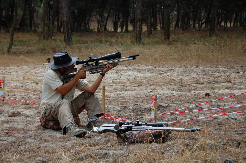 September, 9th, 2007 on Portugal South Region, Açude da Agolada, Coruche Photos (c) by A. Rebelo, D. Santos and M. Vilhena. Field Report by P. Mateus. Shooters competing across 15 lanes and 30 targets on sandy pine woods Details on weapons, scopes, side wheels and accessories Details on lanes and targets |